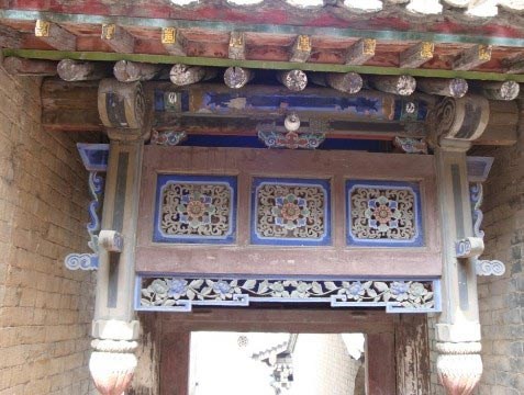 后院左侧一条台阶上的门楼,也是雕梁画栋